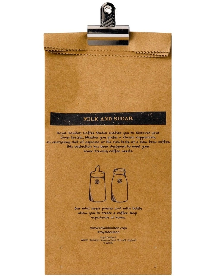 Discover your inner barista with Royal Doulton Coffee Studio. Whether your prefer a classic cappuccino, an energising shot of espresso or the rich taste of a slow brew coffee, this collection has been designed to meet all your home brewing needs. Bring barista style coffee into your home with this stylish duo, featuring a dipped glaze design in a contempoprary colour palette. Coffee Studio Sugar & Milk Set comes in a stylish folding carton coffee style bag with bulldog clip fastener. Made from: Porcelain. Decoration Method: Hand applied impress mark and double dipped satin glaze. Height: Sugar 10cm, Milk 12cm. Width: Sugar 5cm, Milk 5.4cm. Capacity: 112ml. Care: Dishwasher and Microwave safe. Packaging: Folding carton coffee style bag.